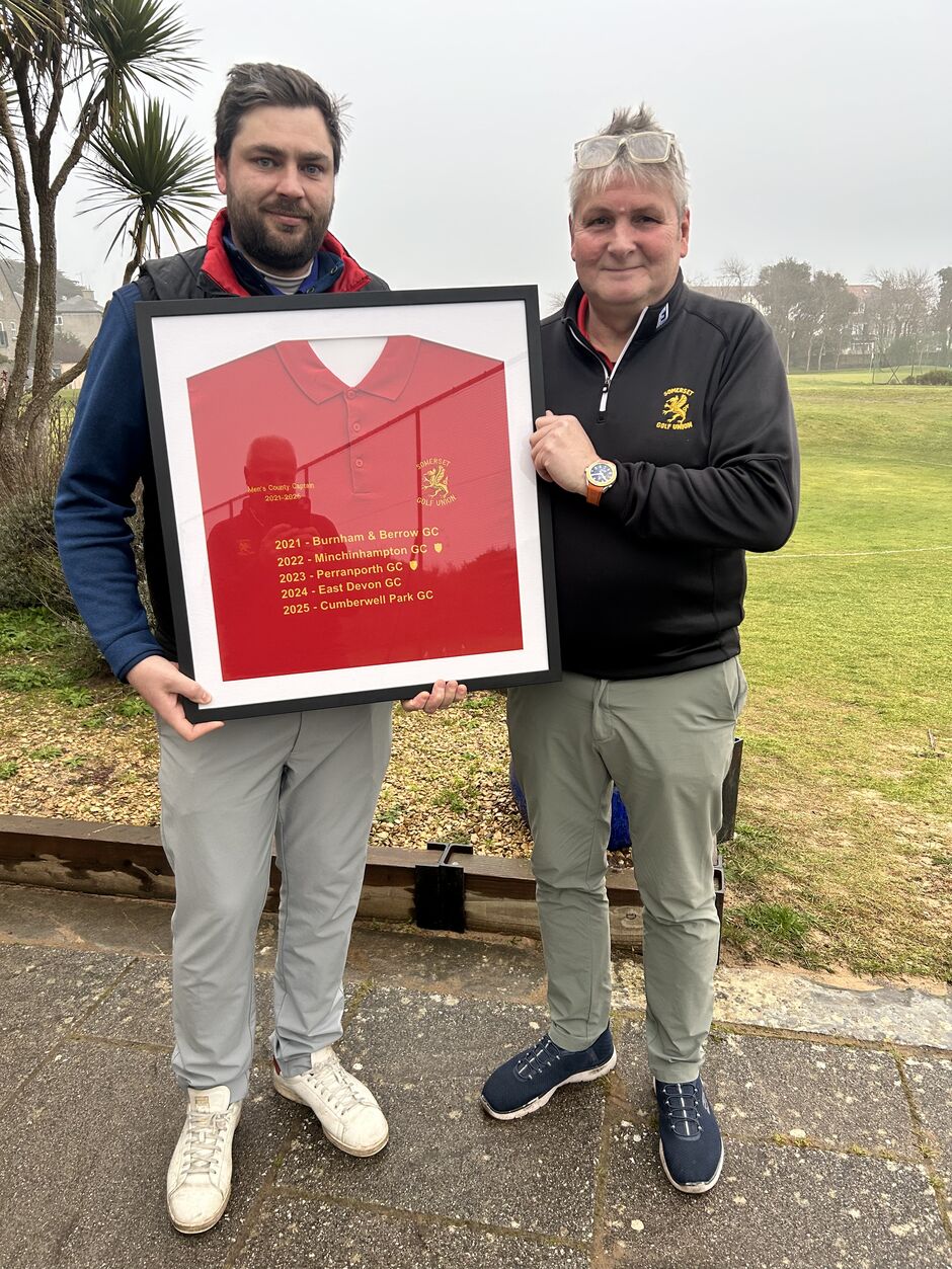 On behalf of the SGU, Curtis Edwards presented the shirt at Weston-s-Mare GC